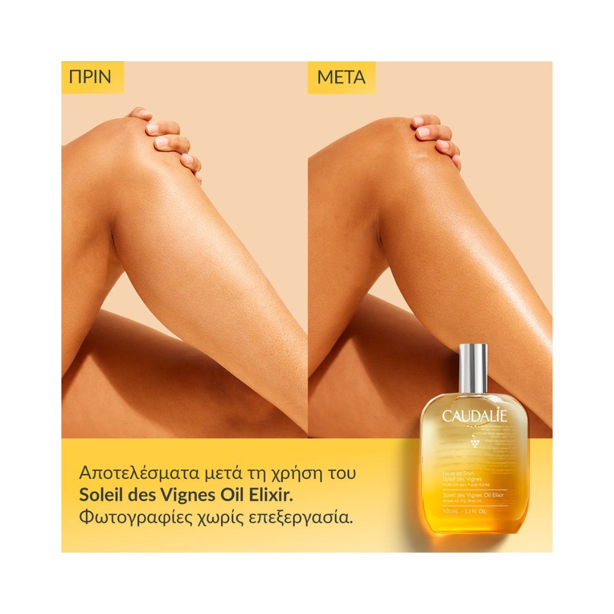 Το Soleil des Vignes Oil Elixir της Caudalie είναι ένα πολυχρηστικό ξηρό έλαιο με πολυτελή υφή και ανάλαφρο φινίρισμα. Σχεδιασμένο για εντατική θρέψη και λάμψη, είναι ιδανικό για το σώμα, τα μαλλιά και τα νύχια, αφήνοντας μια μοναδική καλοκαιρινή αύρα με νότες καρύδας, άνθους πορτοκαλιού και γιασεμιού.